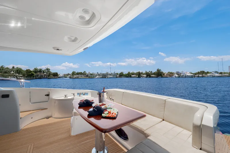 The Azimut 64 offers a spacious flybridge, perfect for sunbathing, socializing, and enjoying panoramic views of Miami. The charter includes two professional crew members for a seamless experience. Guests also enjoy a Seabob, a dinghy, and complimentary beverages. This yacht is an excellent choice for luxury cruising in Miami.