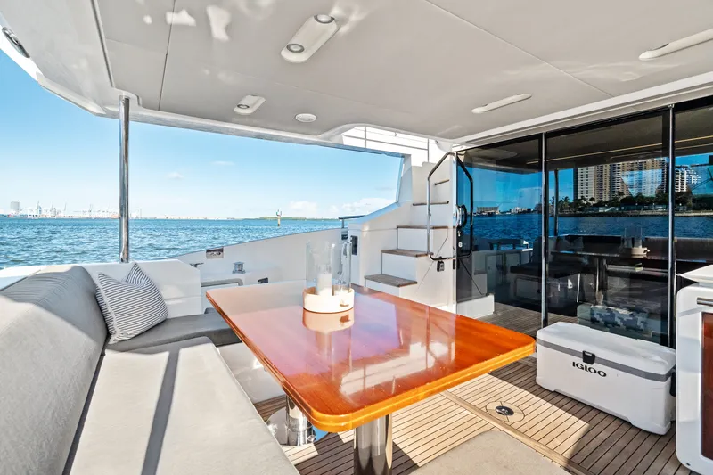 The flybridge provides a large outdoor area ideal for relaxing and enjoying the sea, with plenty of space for sunbathing and socializing. The yacht is operated by 2 professional crew members, ensuring a safe and high-quality service on board. Thanks to its size and equipment, it is a very spacious and pleasant yacht for all guests.